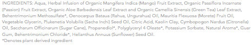 ORGANIC MANGO SUGARS: This juicy tropical fruit offers a subtle, irresistibly exotic scent and contains sugars which help to bond oil proteins to hair, maximizing hydration.